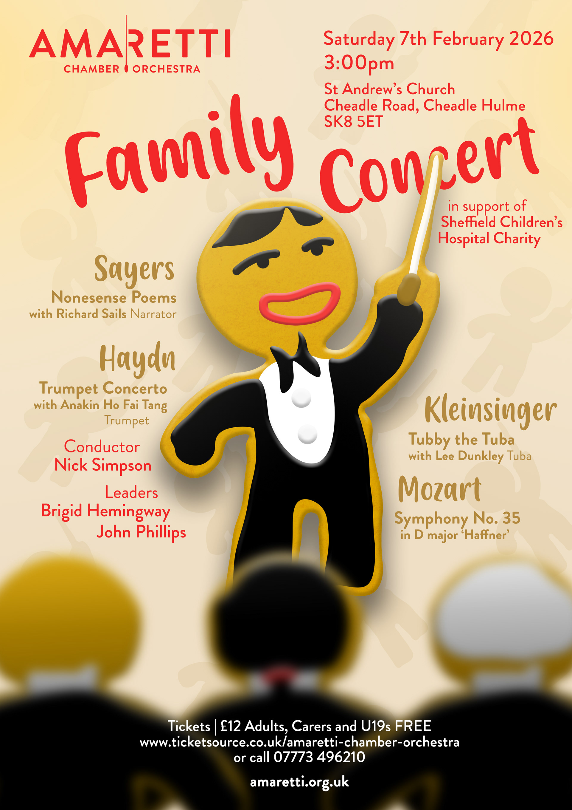 The Amaretti Chamber Orchestra was formed in 2004 by Brigid Hemingway and Peter Aggett. It comprises a group of friends who enjoy playing music to a high standard whilst raising monies for local charities. In our previous concerts, we are pleased to have raised £58,493 to support local charities. We are proud to attract former Hallé players including violinists Mary Anderson and Sare Crouch. Sare was a member from 1960-1998 and sub principal second violin from 1973-1998.